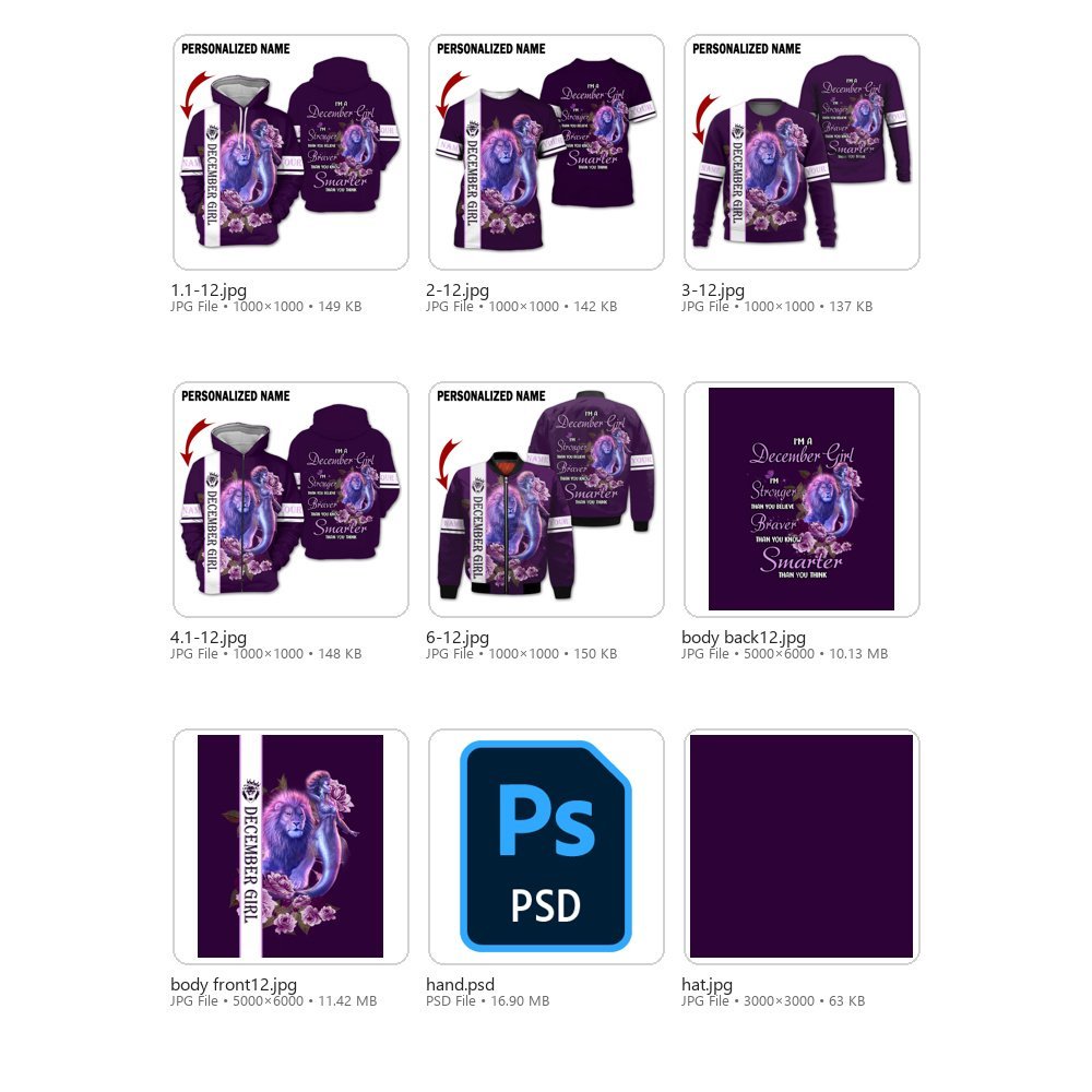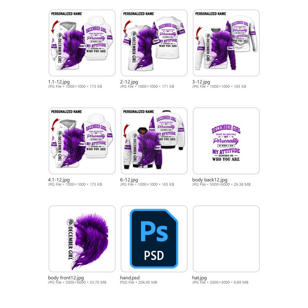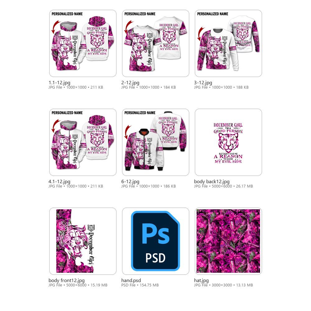 December Girl Collection – 7 Design Bundle | Printable Files + 3D Apparel Mockups (Digital Download)