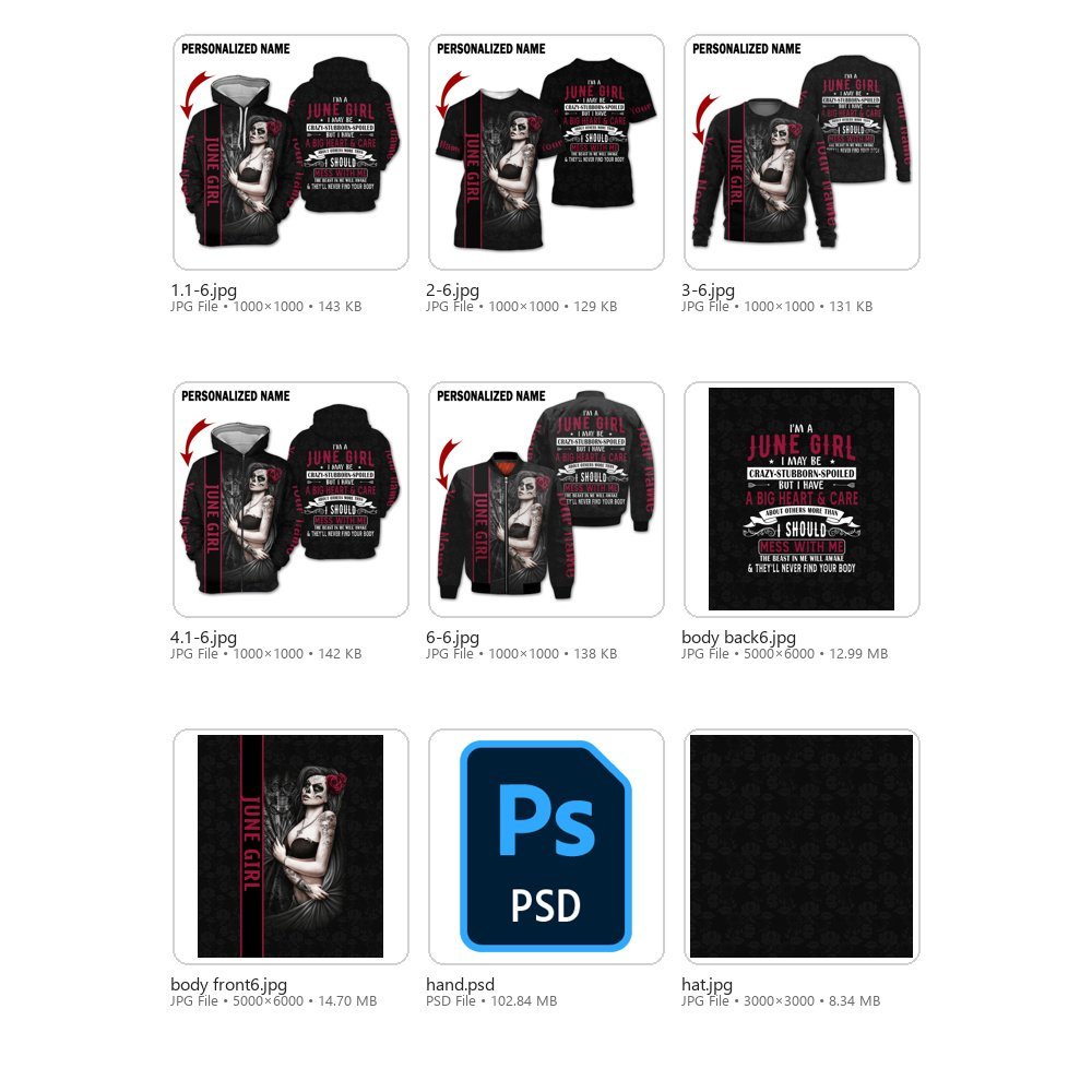 June Girl Collection – 7 Design Bundle | Printable Files + 3D Apparel Mockups (Digital Download)