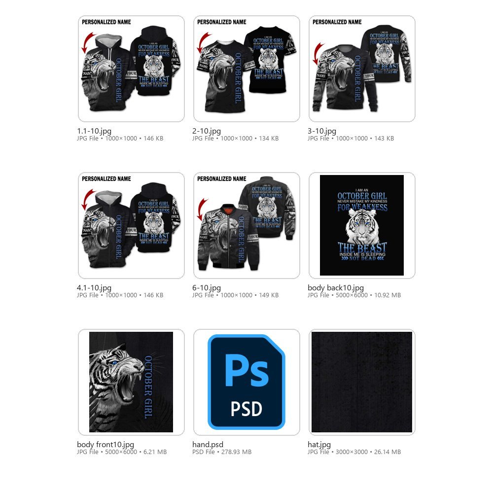 October Girl Collection – 6 Design Bundle | Printable Files + 3D Apparel Mockups (Digital Download)