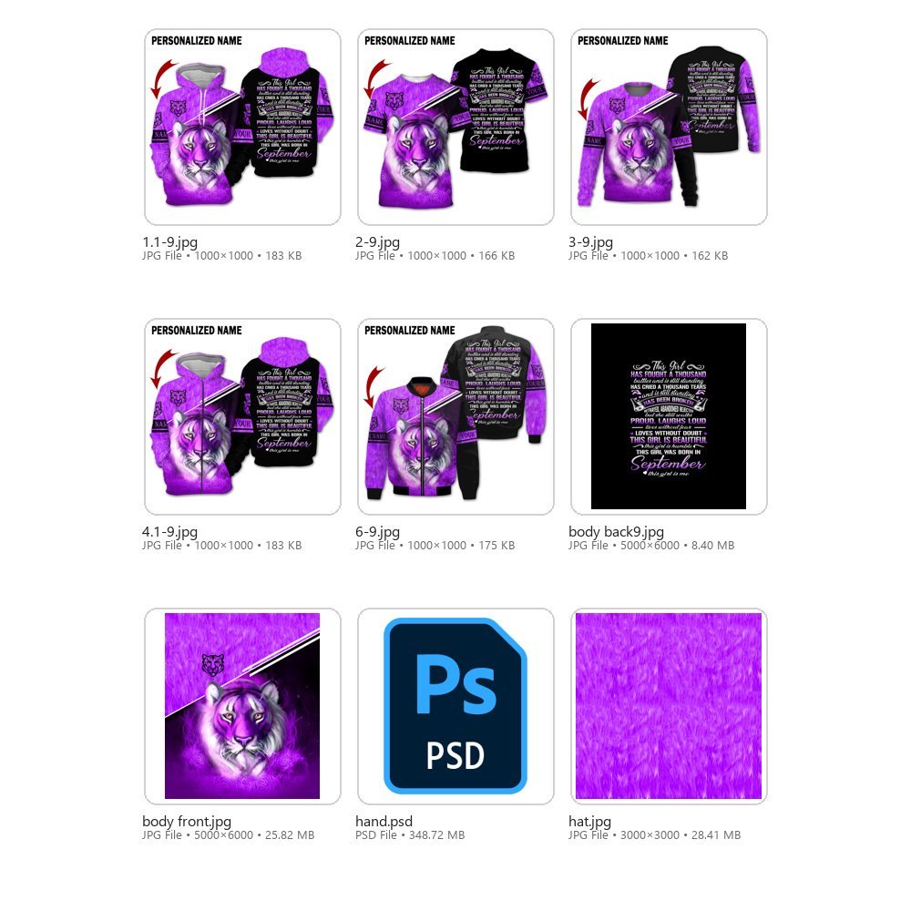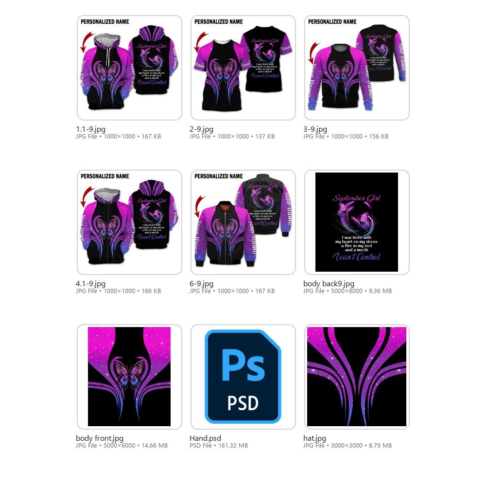 September Girl Collection – 6 Design Bundle | Printable Files + 3D Apparel Mockups (Digital Download)